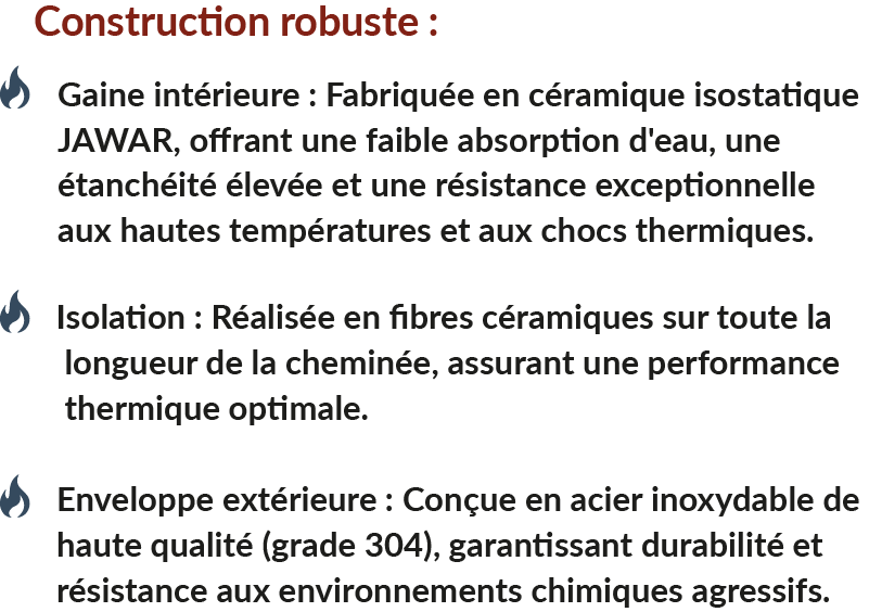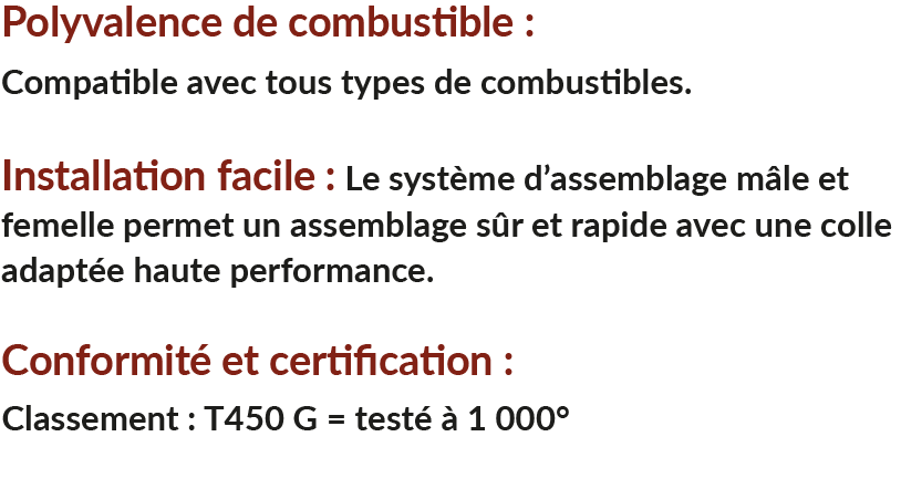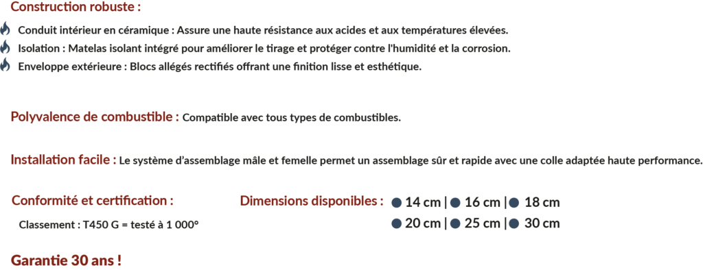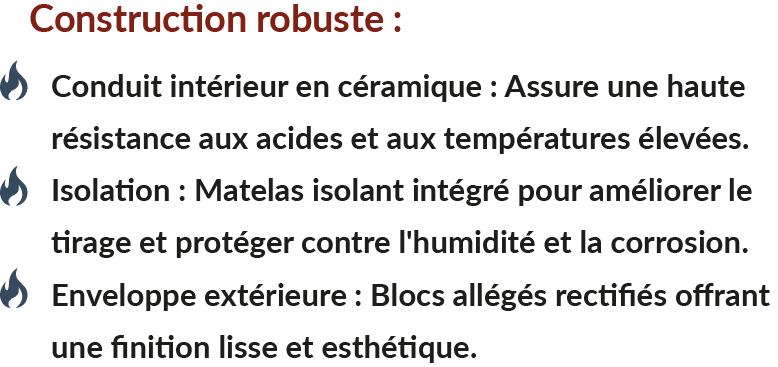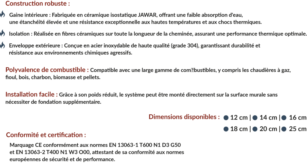 Matériaux robustes, conformes normes européennes, résistance exceptionnelle au feu et aux condensats.